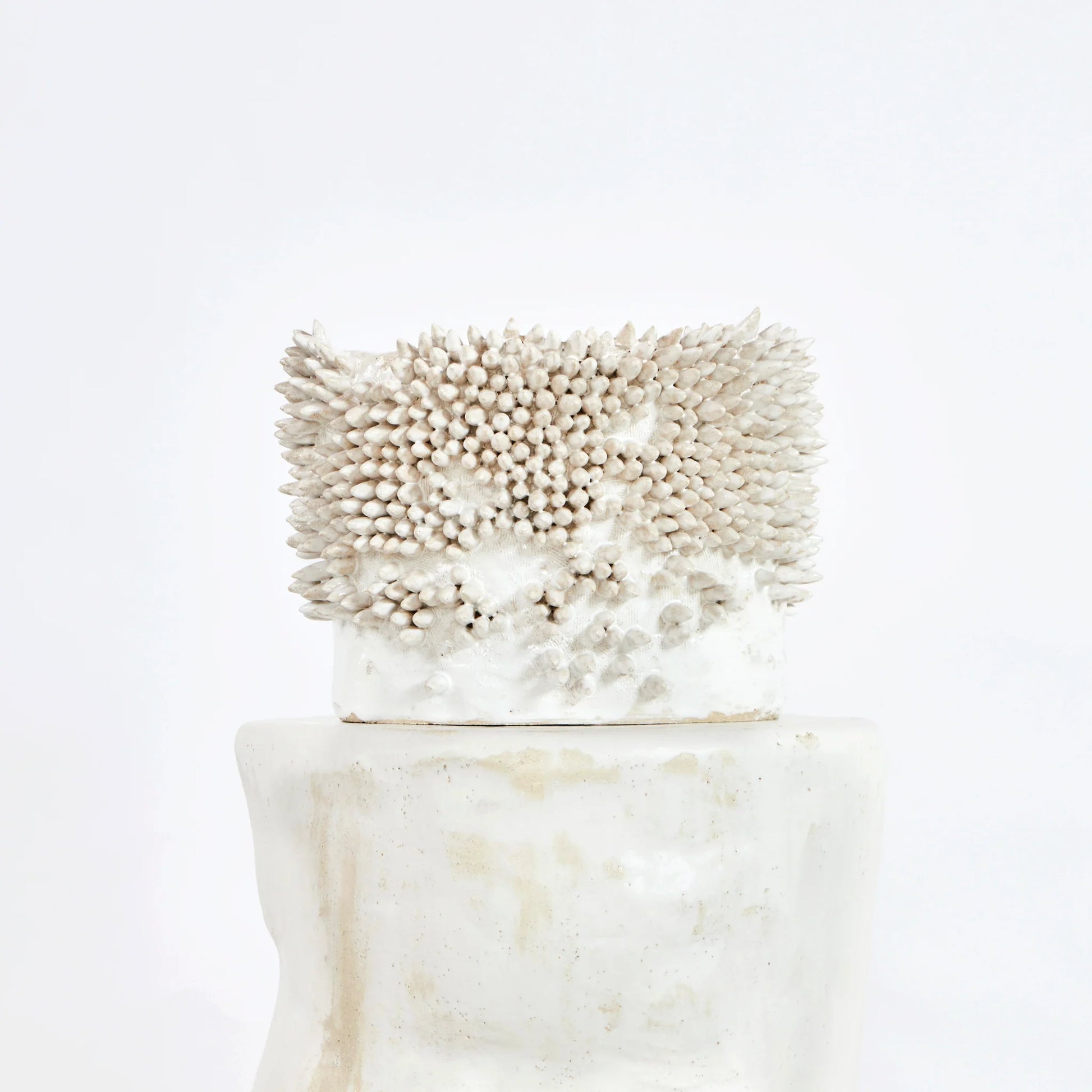 Artisanal ceramic vase created by skilled artisans in Project 213A's own ceramic workshop. The entire vase is covered with "appuntito" spikes with some bare areas showing the shape of the vase.