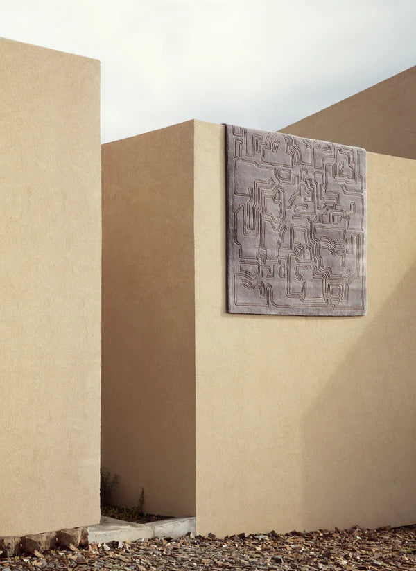 The new subdued colour scheme of the now iconic Structures collection by OEO Studio. This new palette allows the design to take on a different role, becoming more sophisticated and mystic in its overall aesthetic. The inspiration behind the Structures collection is "traces of man" with a strong cross- cultural approach. The pattern design of the collection plays with references to past civilizations, drawing inspiration from old Chinese stamps as well as rural art and folklore. Handtufted from STANDARD 100 by OEKO-TEX certified New Zealand Wool, with an additional OEKO-TEX cotton layer on the backside, making it suitable for any type of floor, for both residential and commercial spaces.