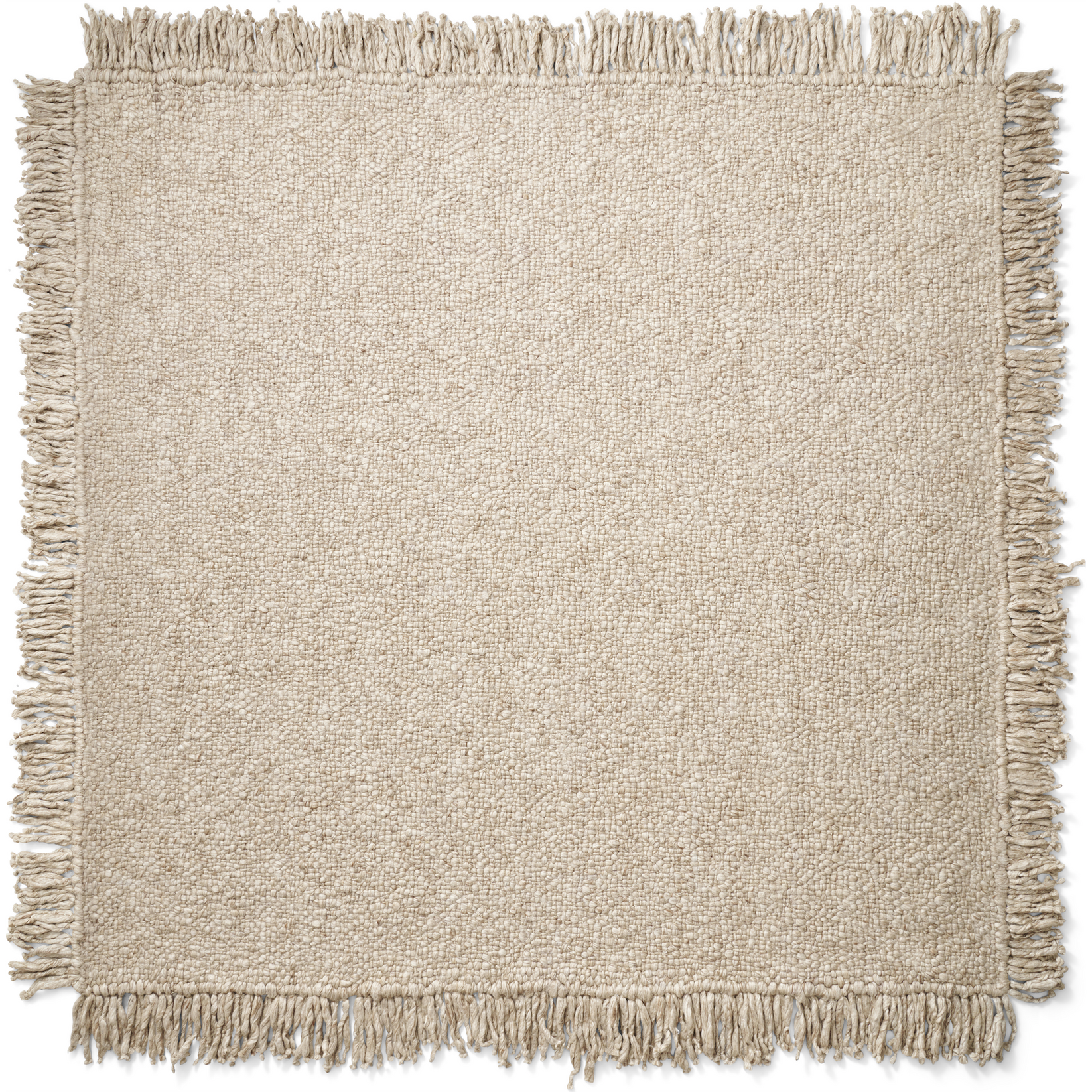 Rugs no.11 is a heavy, compact, and rustic rug in luxury chunky wool woven in a classic basket weave construction. The bold and overdimensioned yarn runs through the entire rug and transitions into fringes made from the same yarn along all the sides. This elevated piece is the first in Cappelen Dimyr’s collection with a more classic appearance.