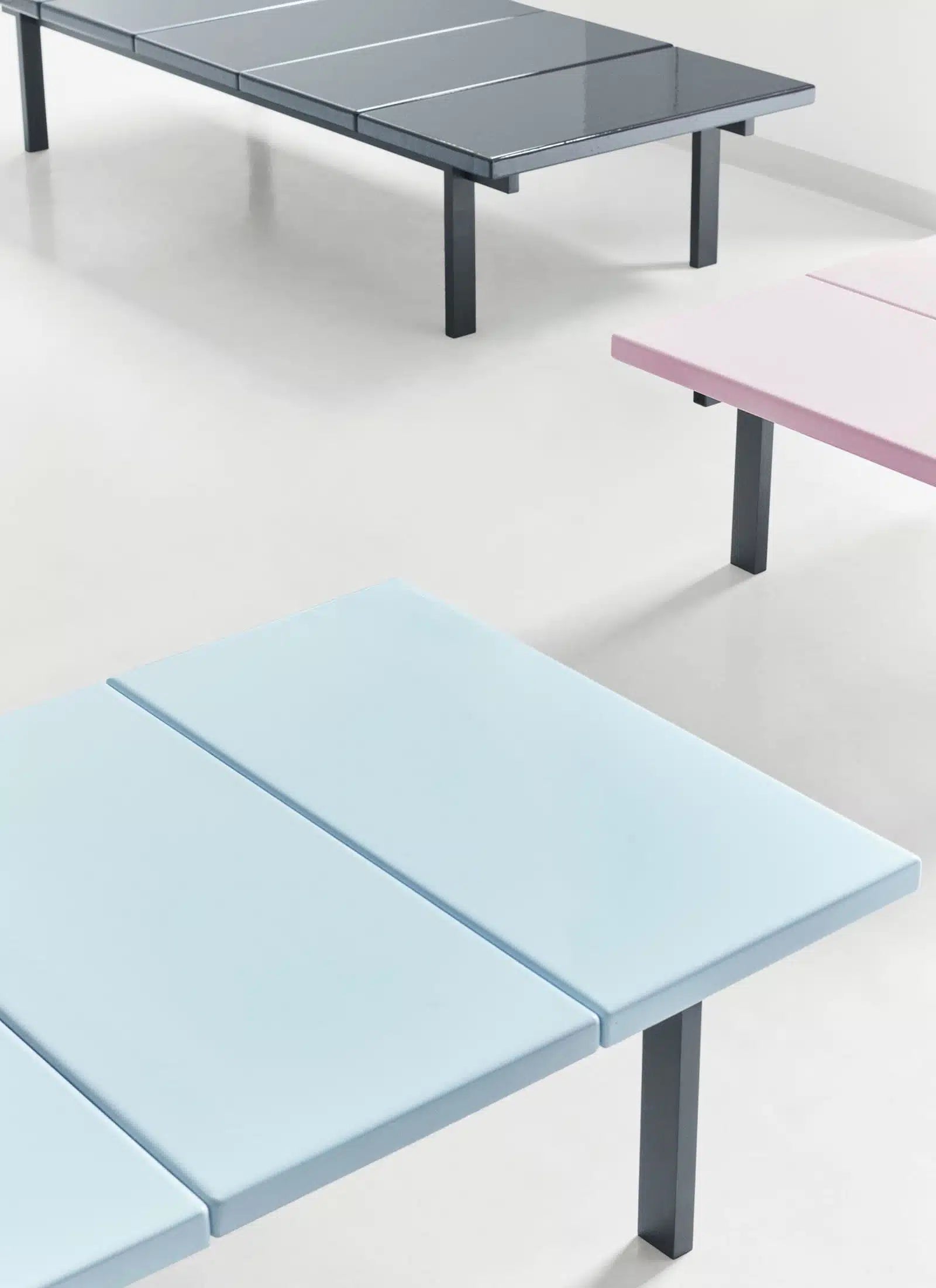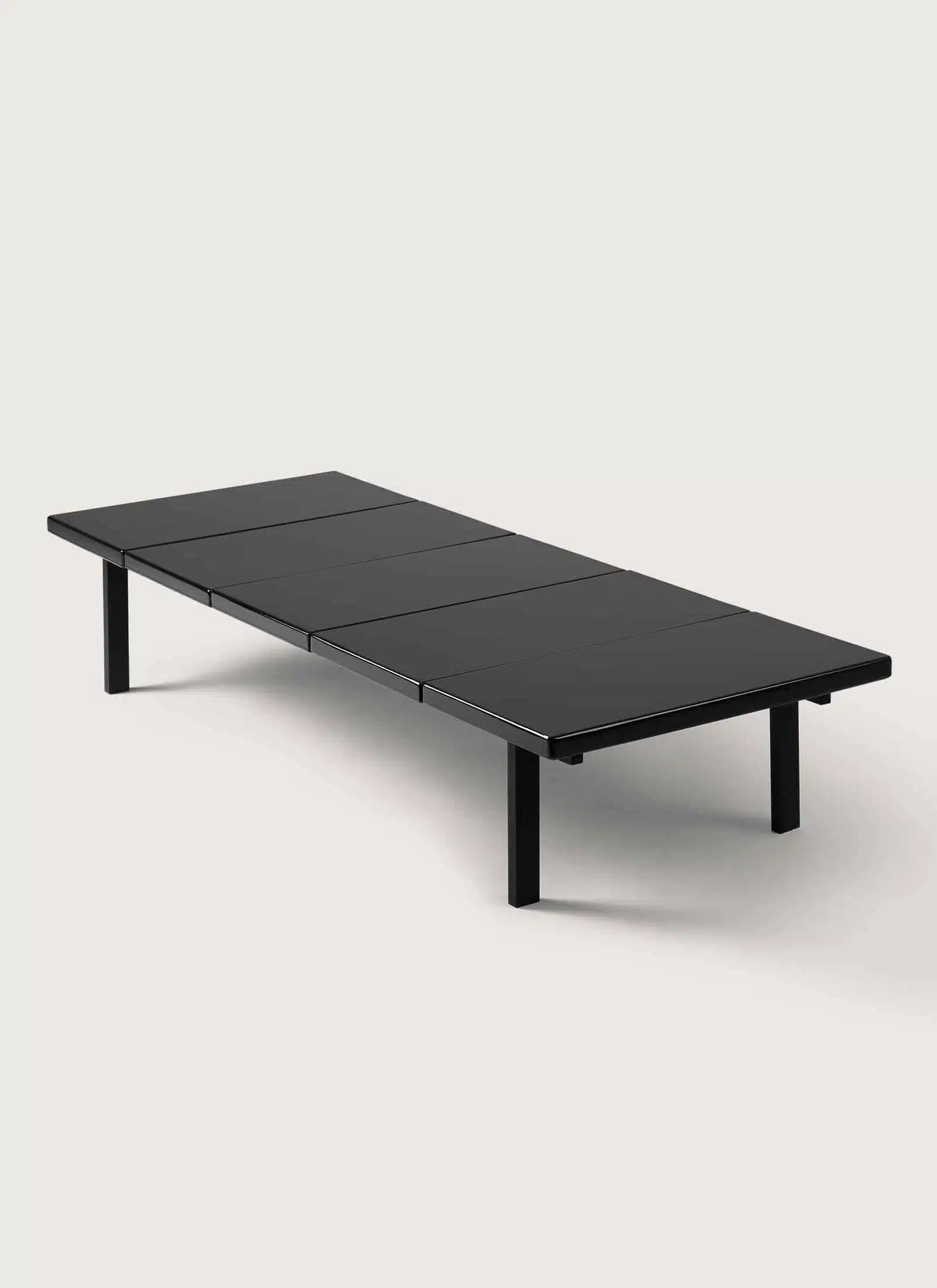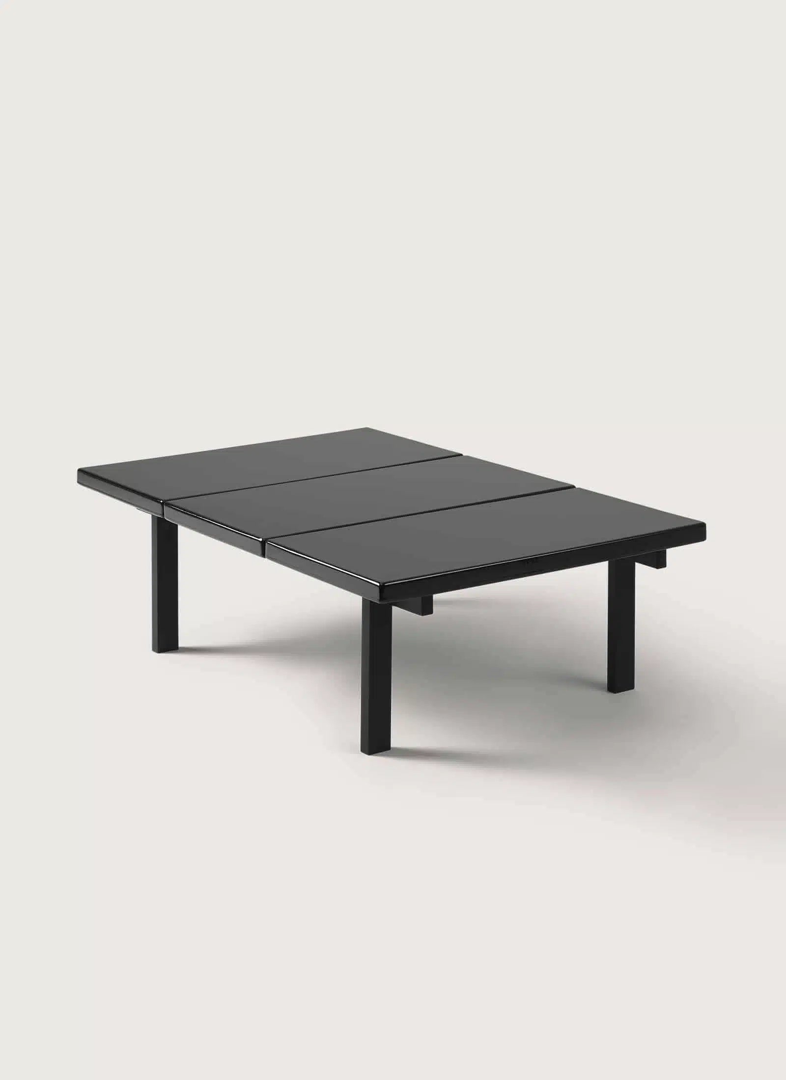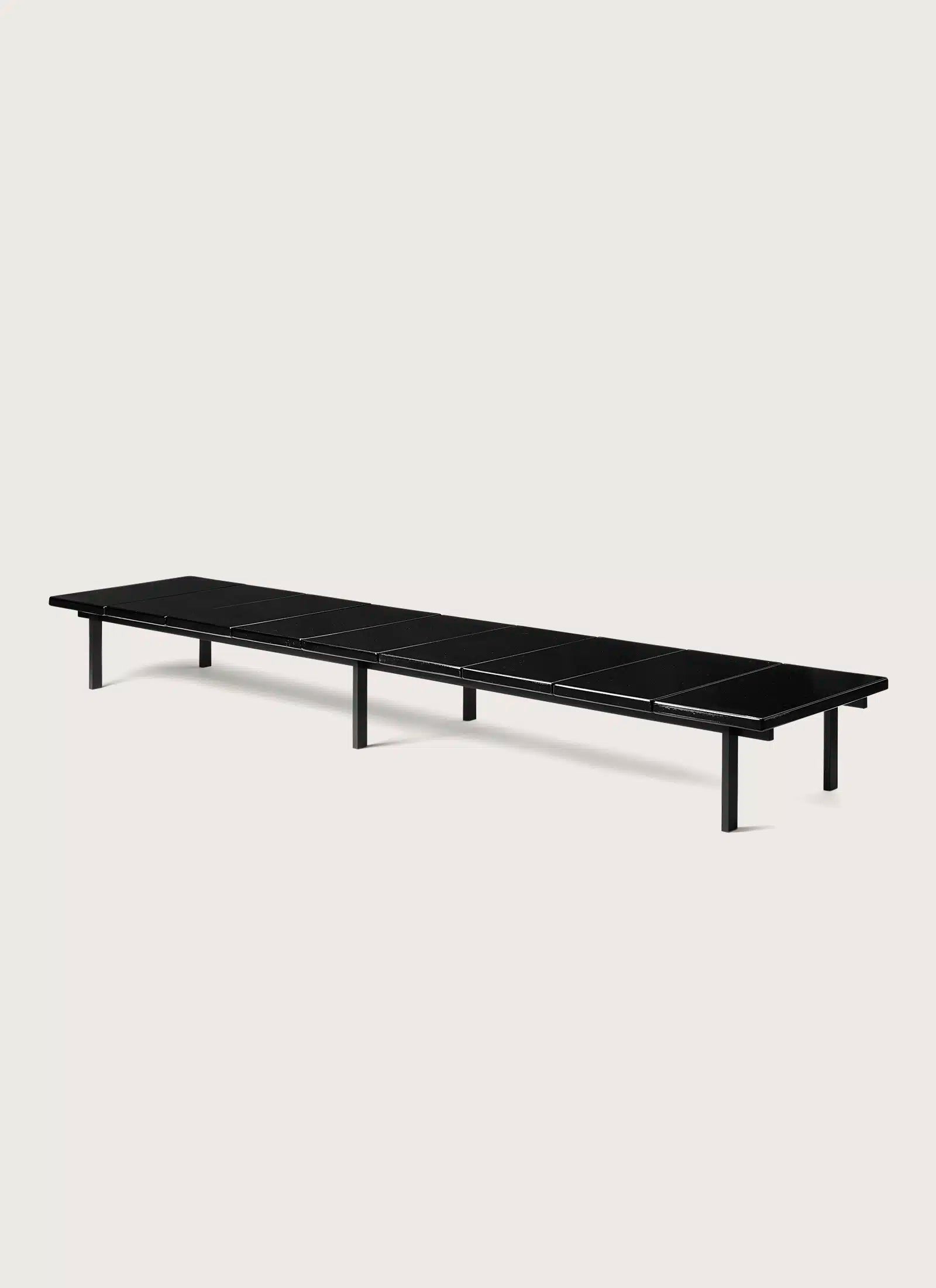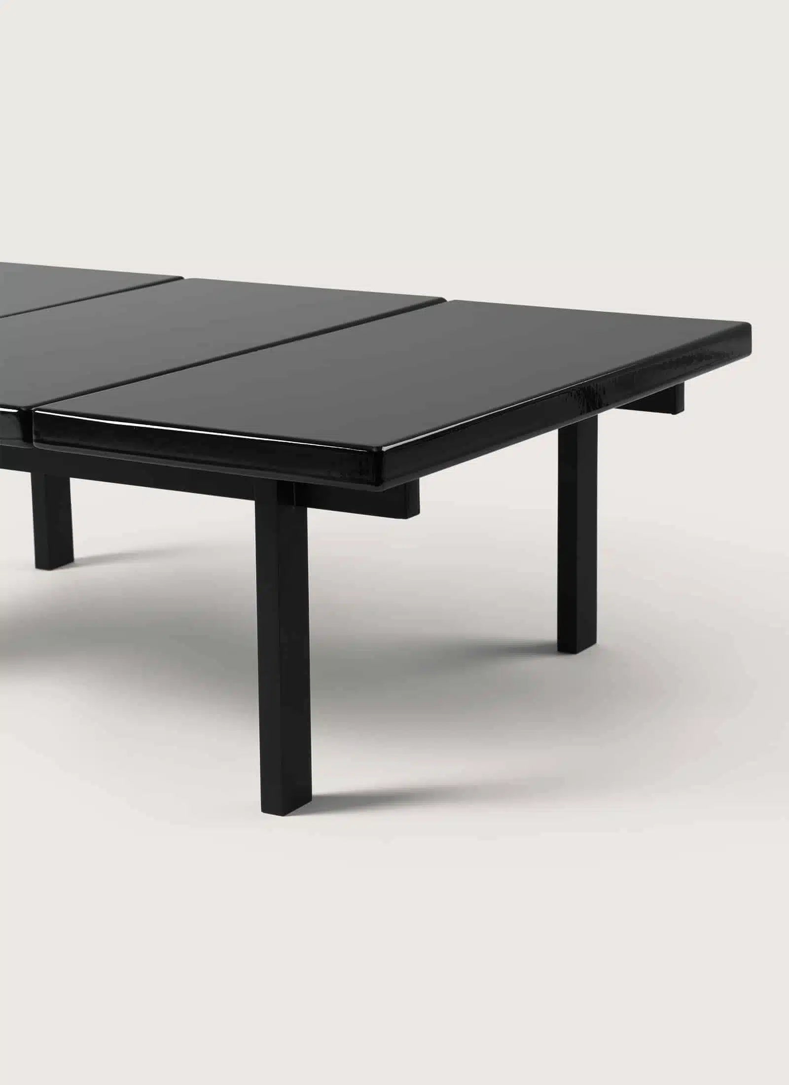 The Tile Extendable Coffee Table, designed by David Thulstrup, combines Danish craftsmanship with a contemporary, creative sense. Its naturally glazed lava stone tabletop rests smoothly on a sleek metal base, striking the ideal mix between unpolished design and natural materials. Each table may expand gradually, one tile at a time, to accommodate various settings and events thanks to the extensible feature.