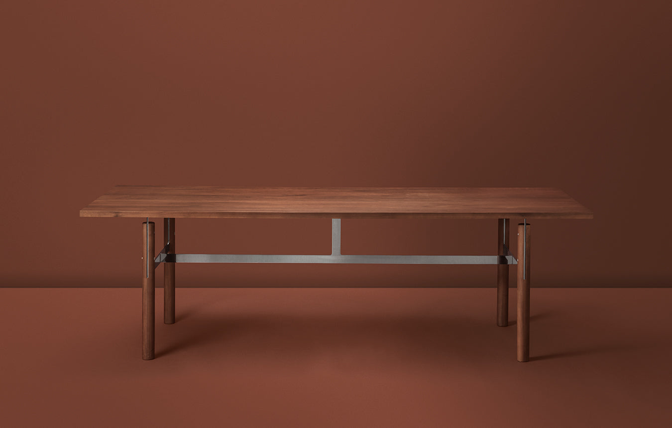 Beam Dining Table - Walnut (Customizable RAL Beam Color)