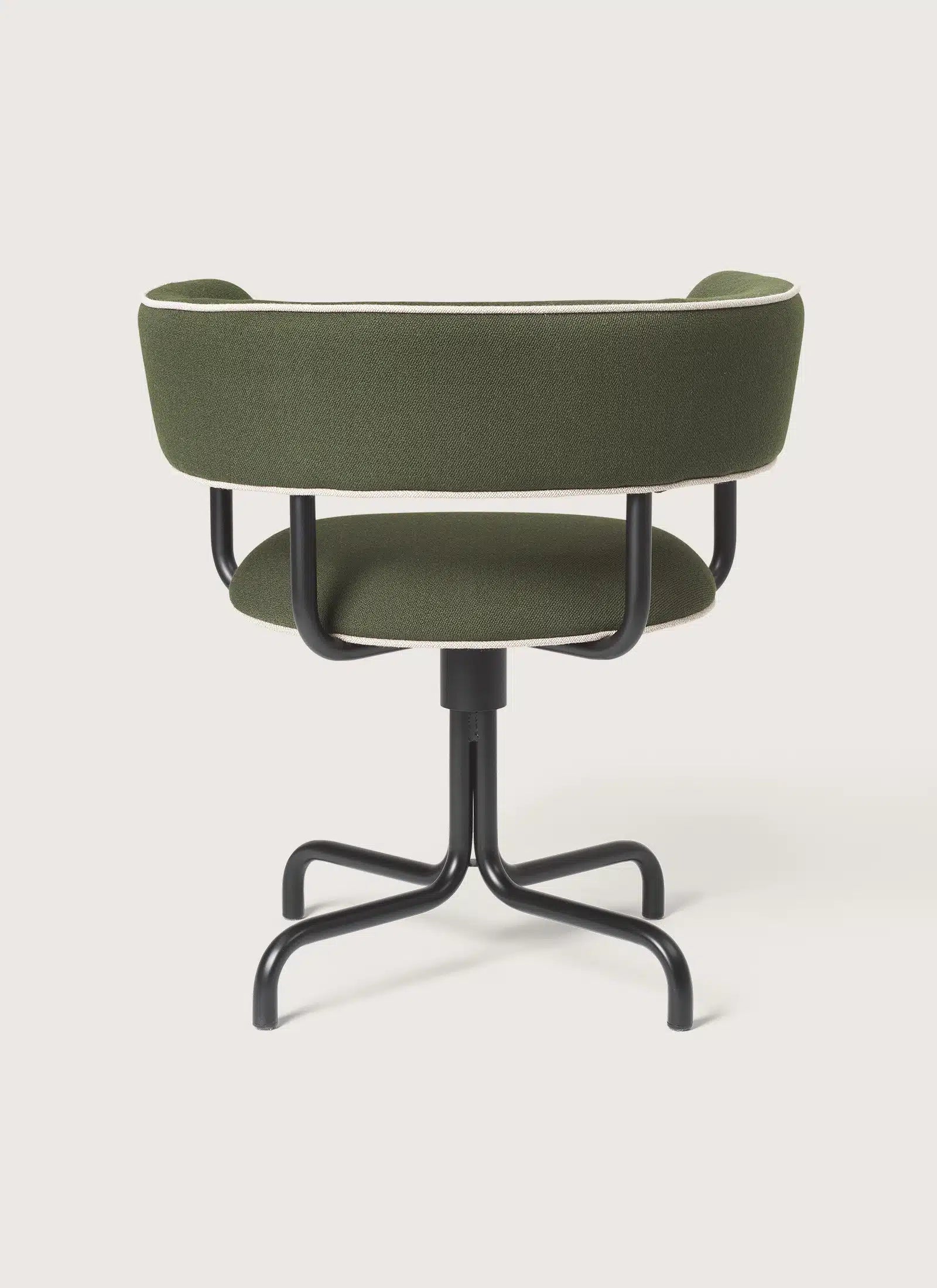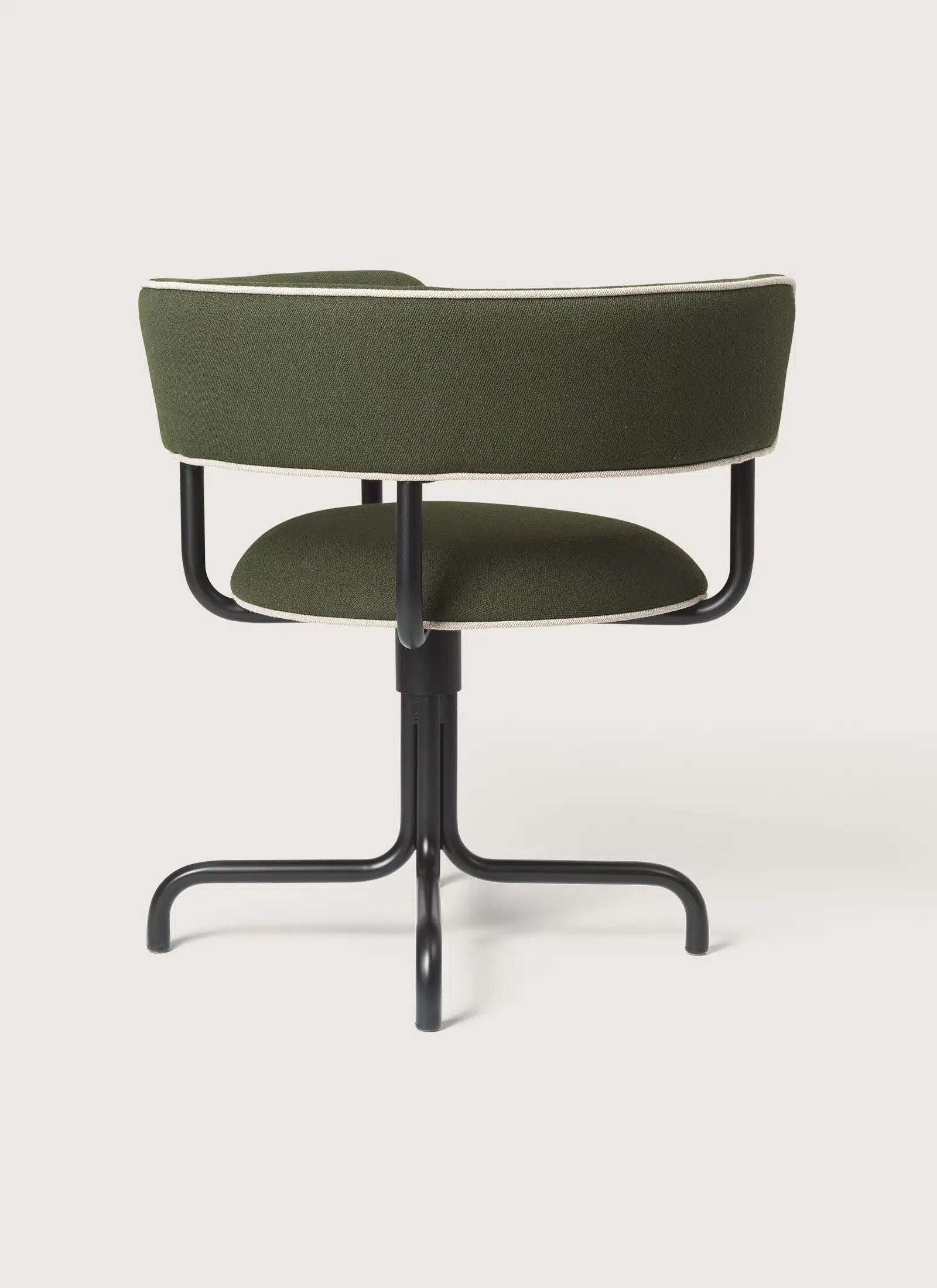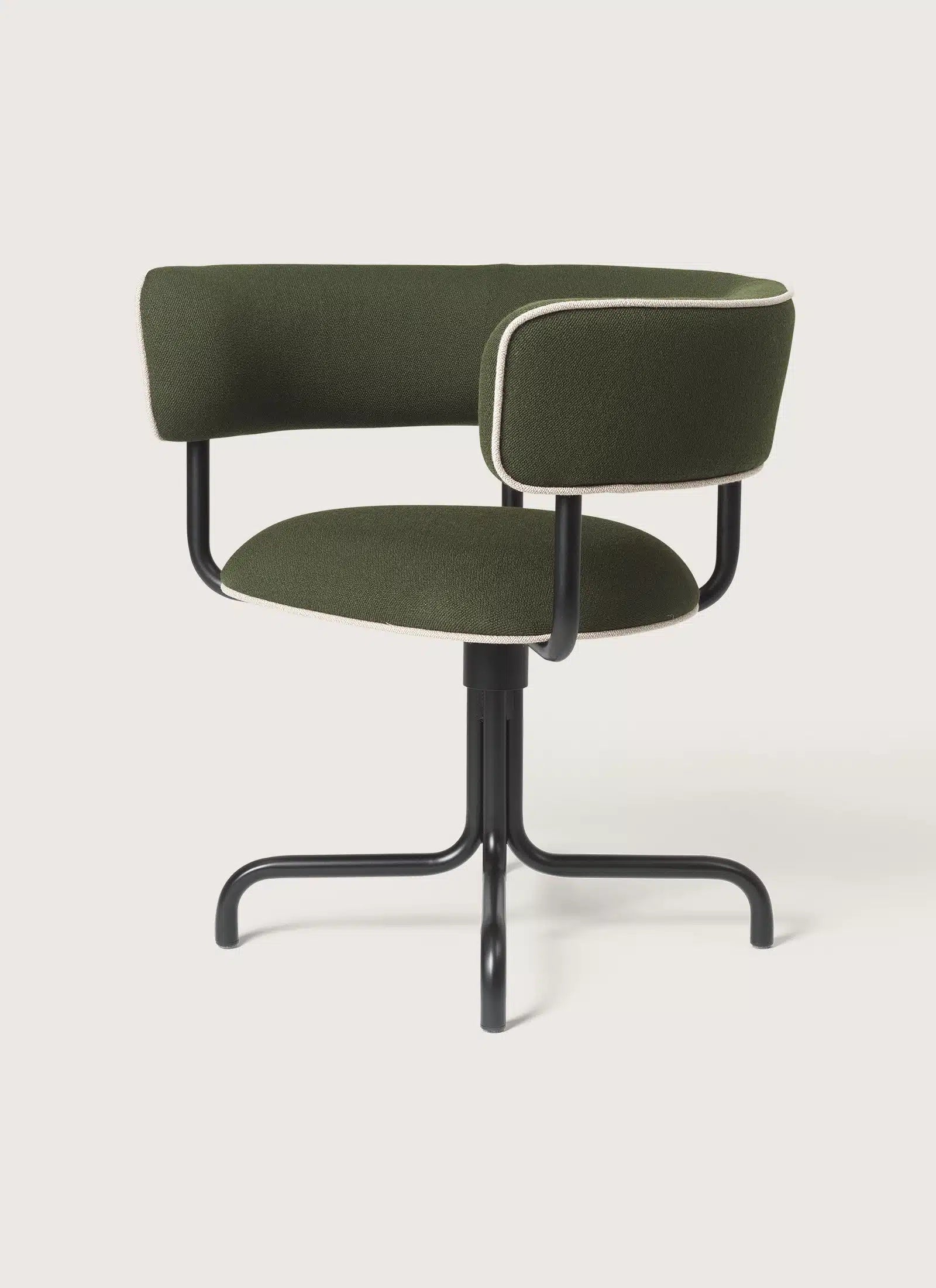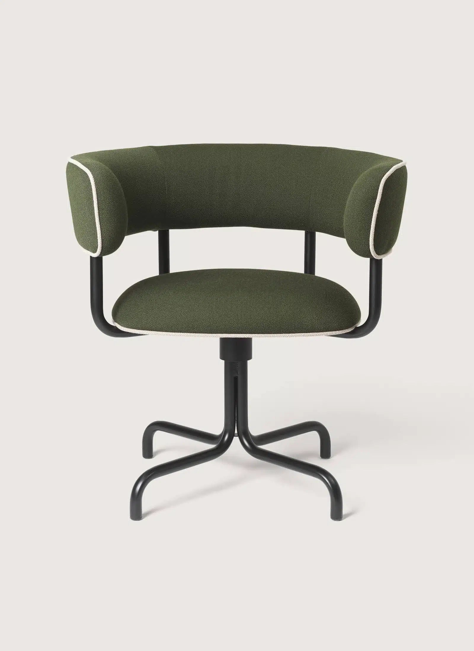 Font Swivel armchair with matte black frame is a comfortable office chair that is suitable for the meeting room or a home office. It’s a line extensions to the Font collection, therefore the design of Font Swivel is familiar. The Font collection and Font Swivel are interconnected through their design which is evolved from the geometry of the circle. Designed by David Thulstrup. The base is a special made design only available for Font Swivel. It’s a well-balanced mixture of classic and elegant design and functionality.