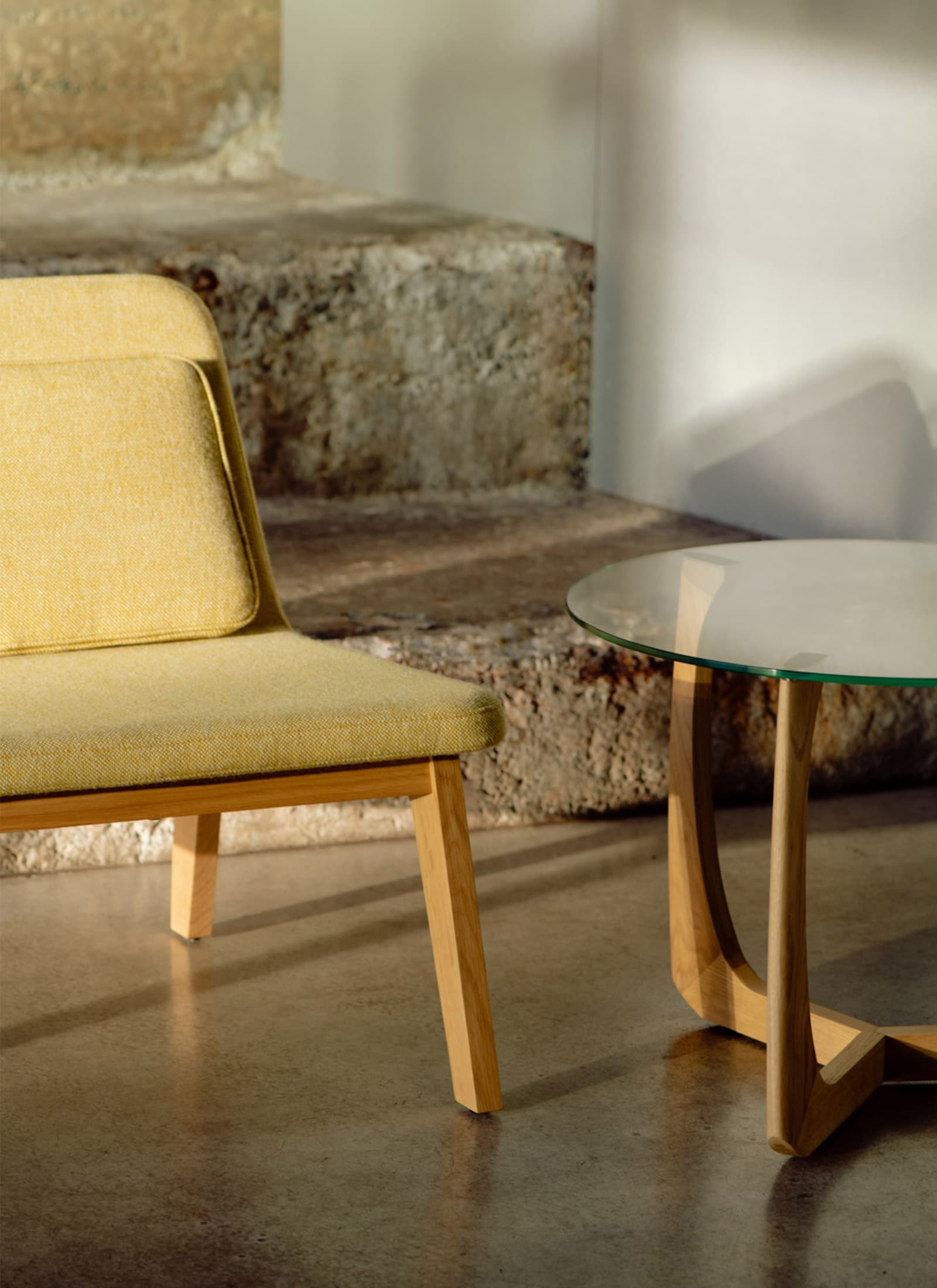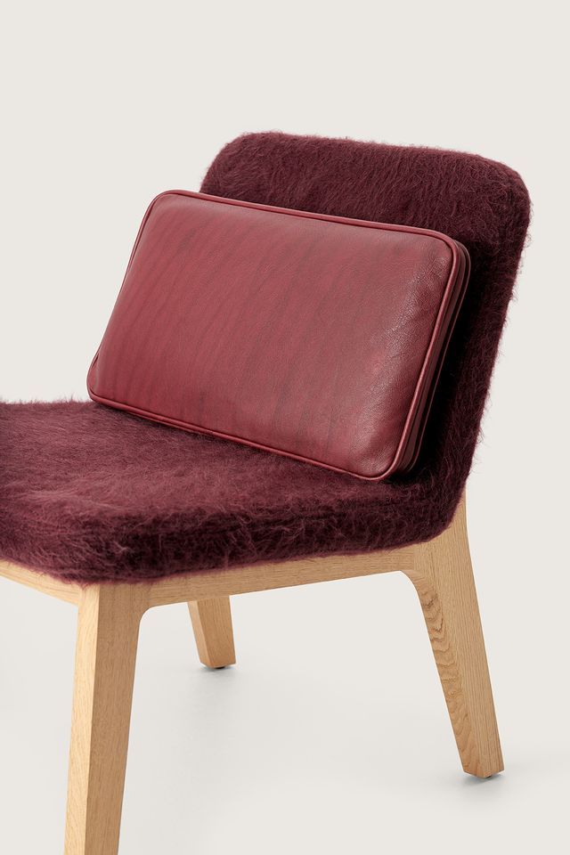 The Lean lounge Chair in oiled oak is an example of traditional craftsmanship applied to a modern design: an upholstered shell in a basic and minimalistic shape leans on a solid oak supporting structure that can be stained or left natural. The lounge chair brings the signature of the design duo GamFratesi, whose combination of Danish and Italian design approach is synthesized here in this lounge chair. Lean combines appealing design with outstanding comfort.