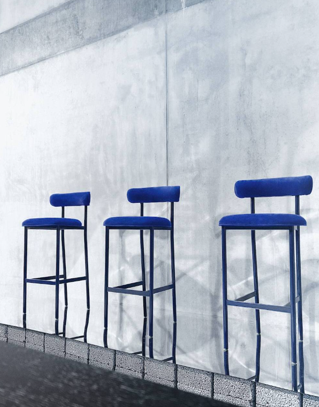 The “Font” collection is a family of chairs, lounge chairs, barstools, and sofas, available with or without armrests. The collection's name refers to graphic fonts that inspire the varying thickness of the cushion and backrest.