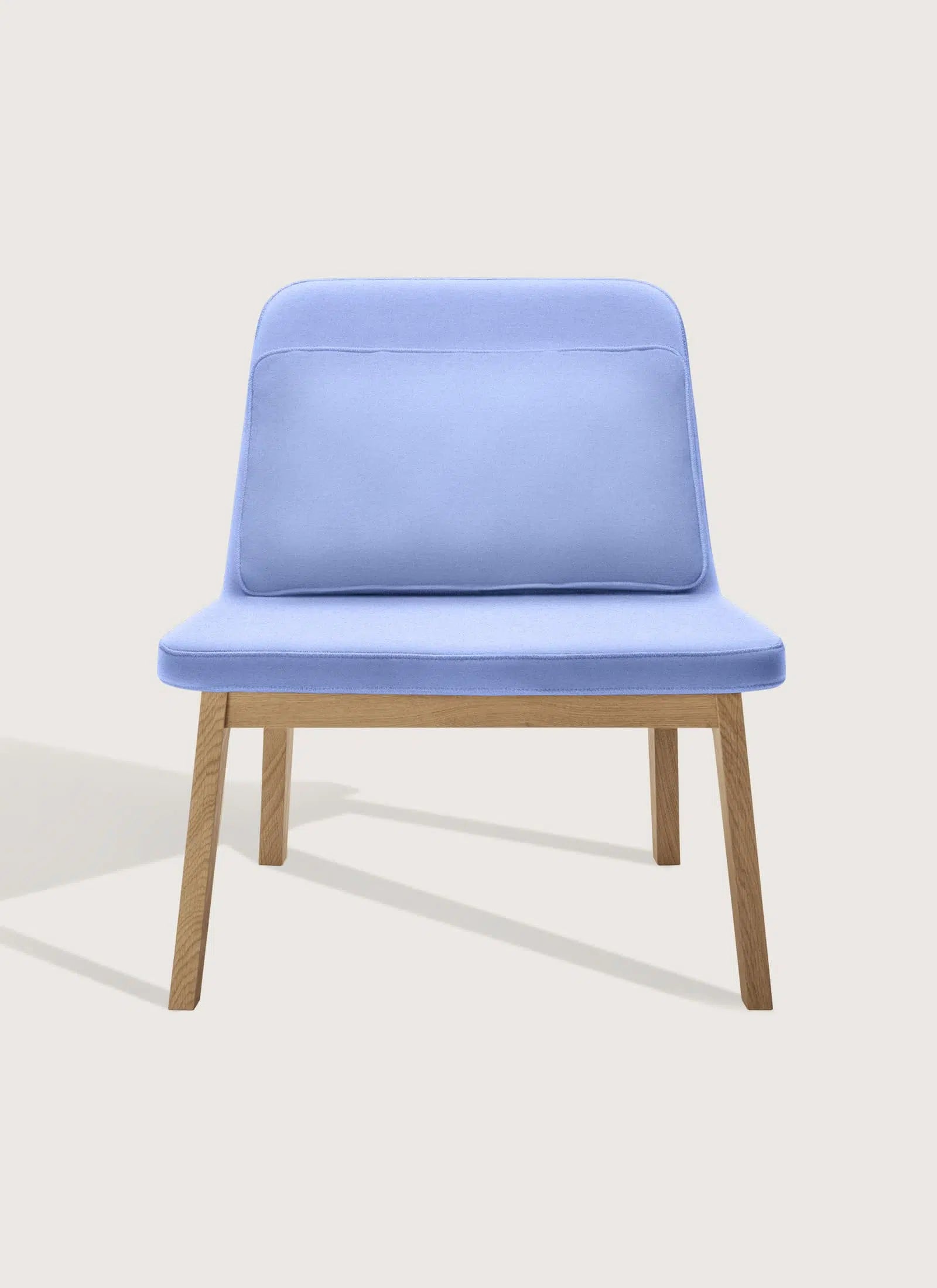 The Lean lounge Chair in oiled oak is an example of traditional craftsmanship applied to a modern design: an upholstered shell in a basic and minimalistic shape leans on a solid oak supporting structure that can be stained or left natural. The lounge chair brings the signature of the design duo GamFratesi, whose combination of Danish and Italian design approach is synthesized here in this lounge chair. Lean combines appealing design with outstanding comfort.