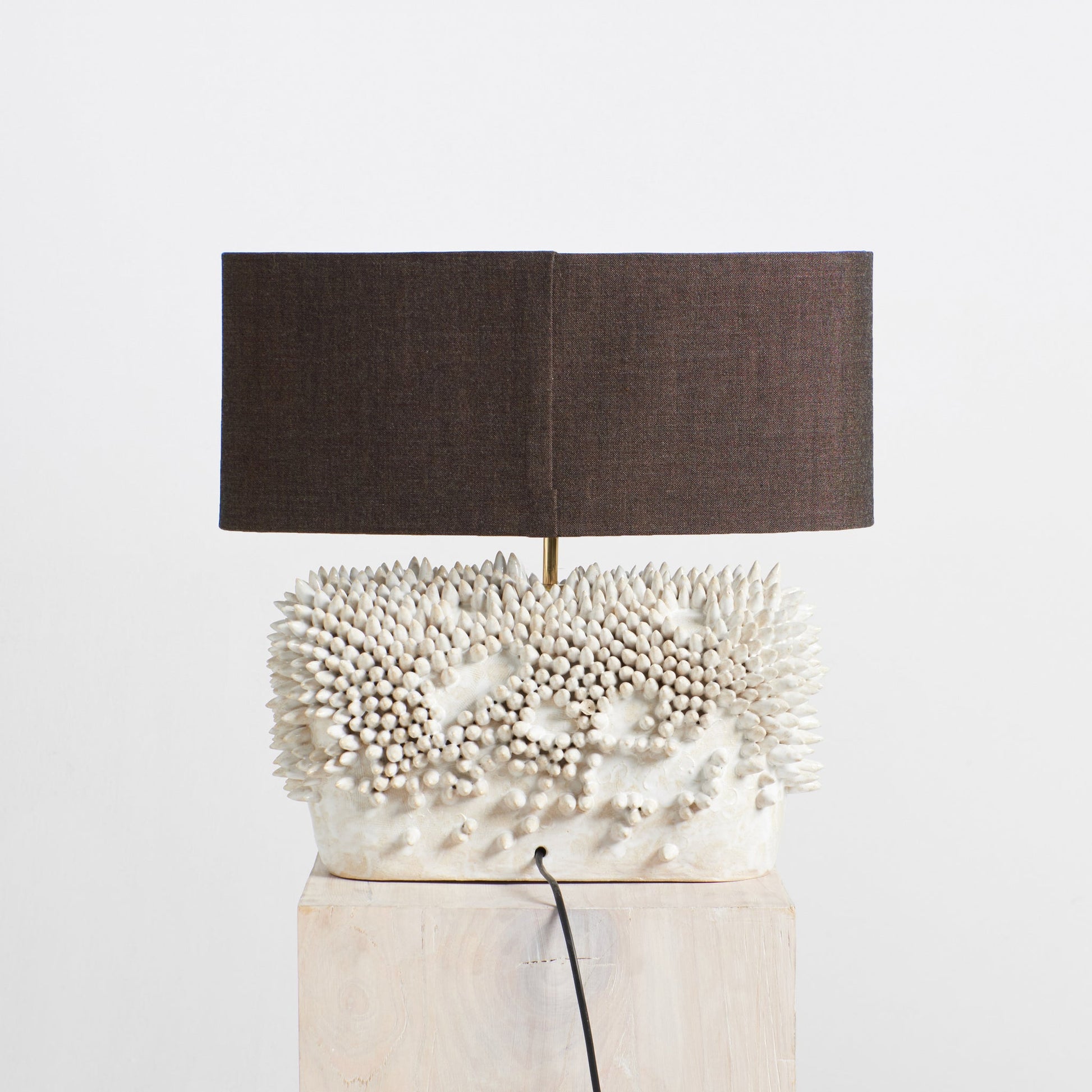 This light has a hand-crafted ceramic base which is covered with individually shaped ceramic spikes. This artisanal piece is made in Project 213A's in-house ceramic workshop.