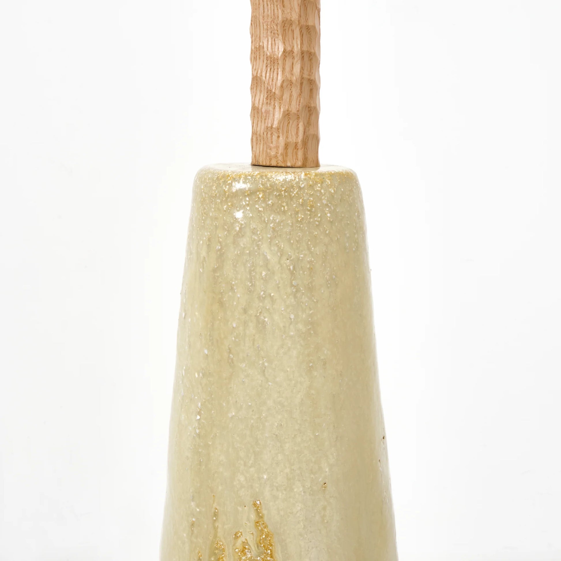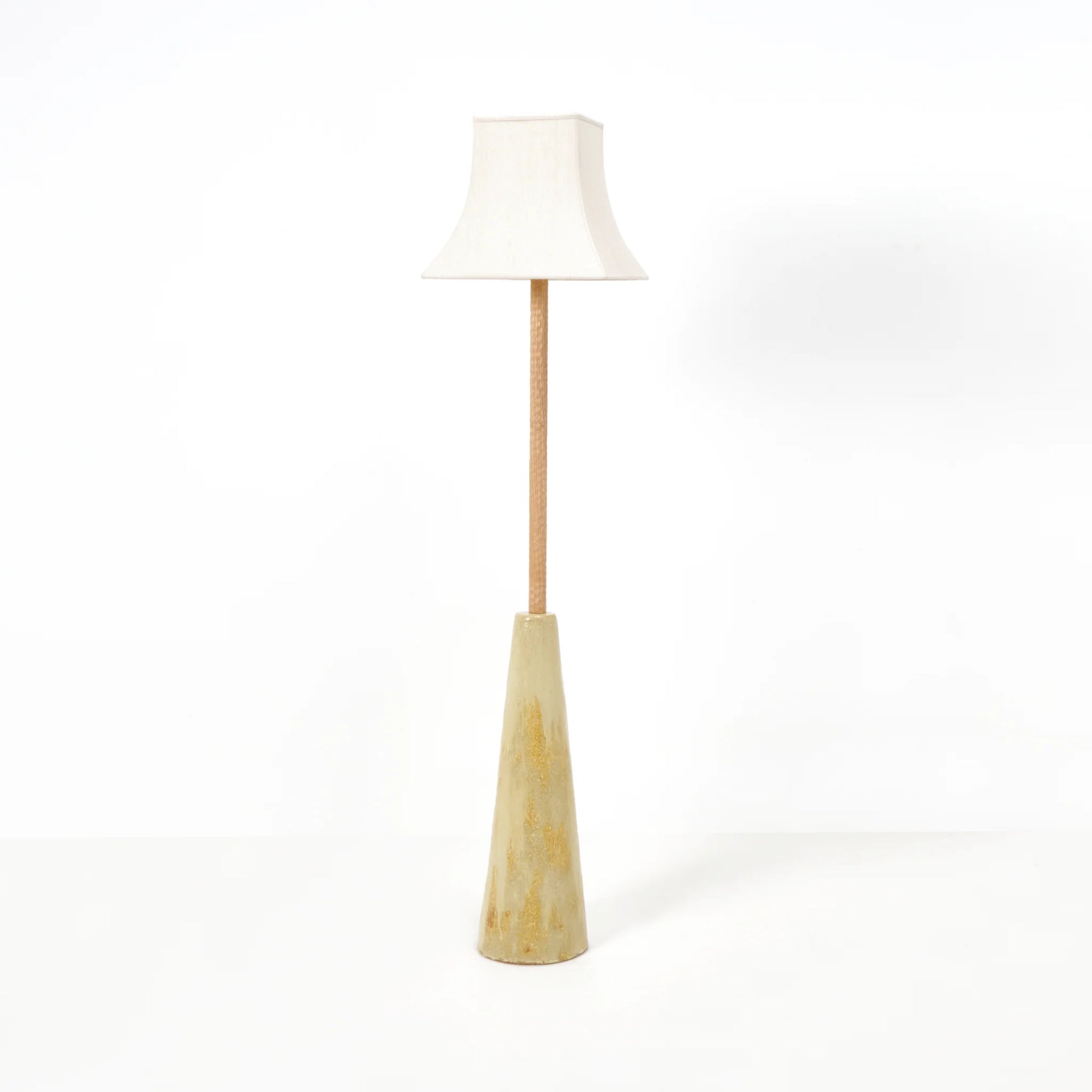 Large artisanal floor light made in Project 213A's own workshop. This piece has a hand-crafted base that is either finished in wood or ceramic.