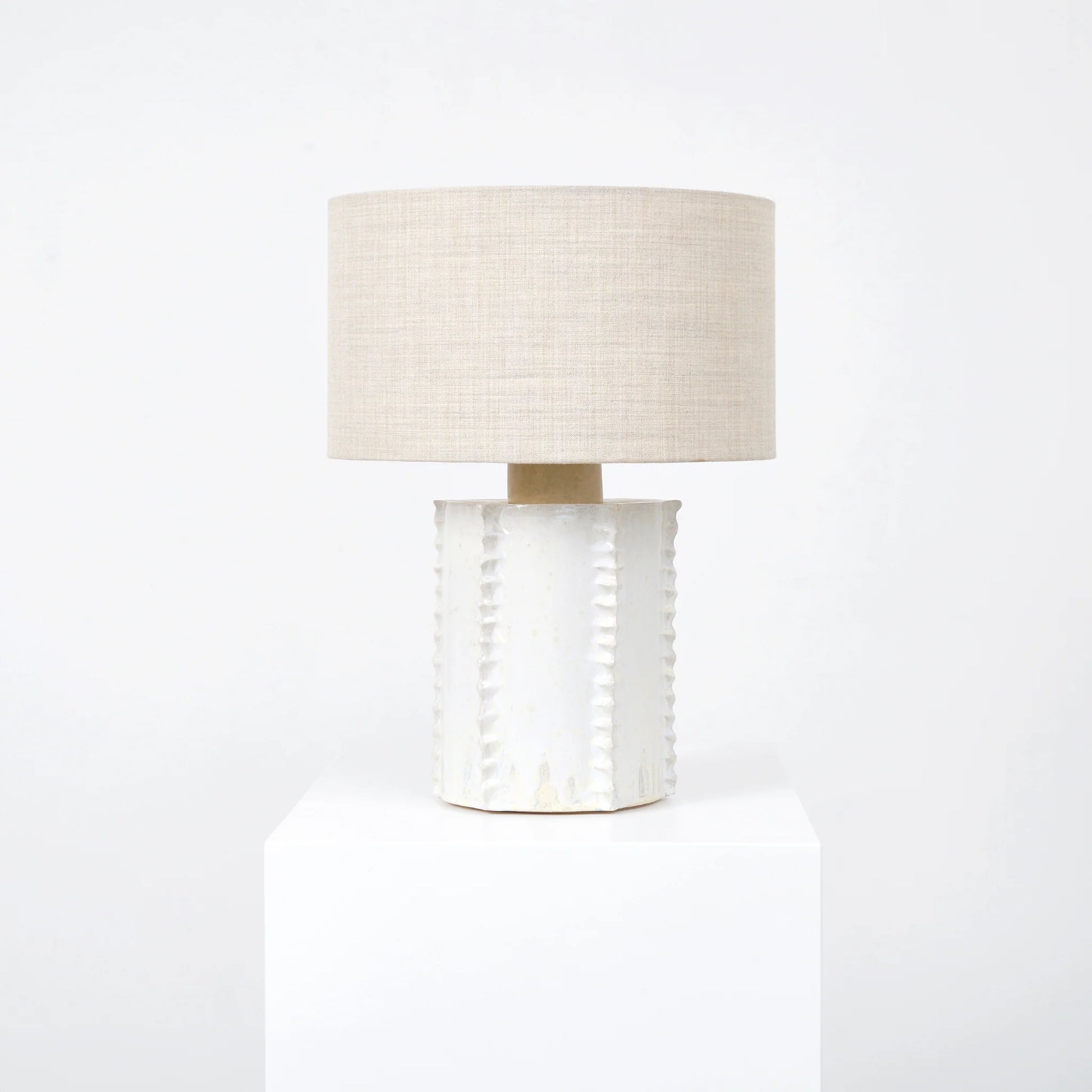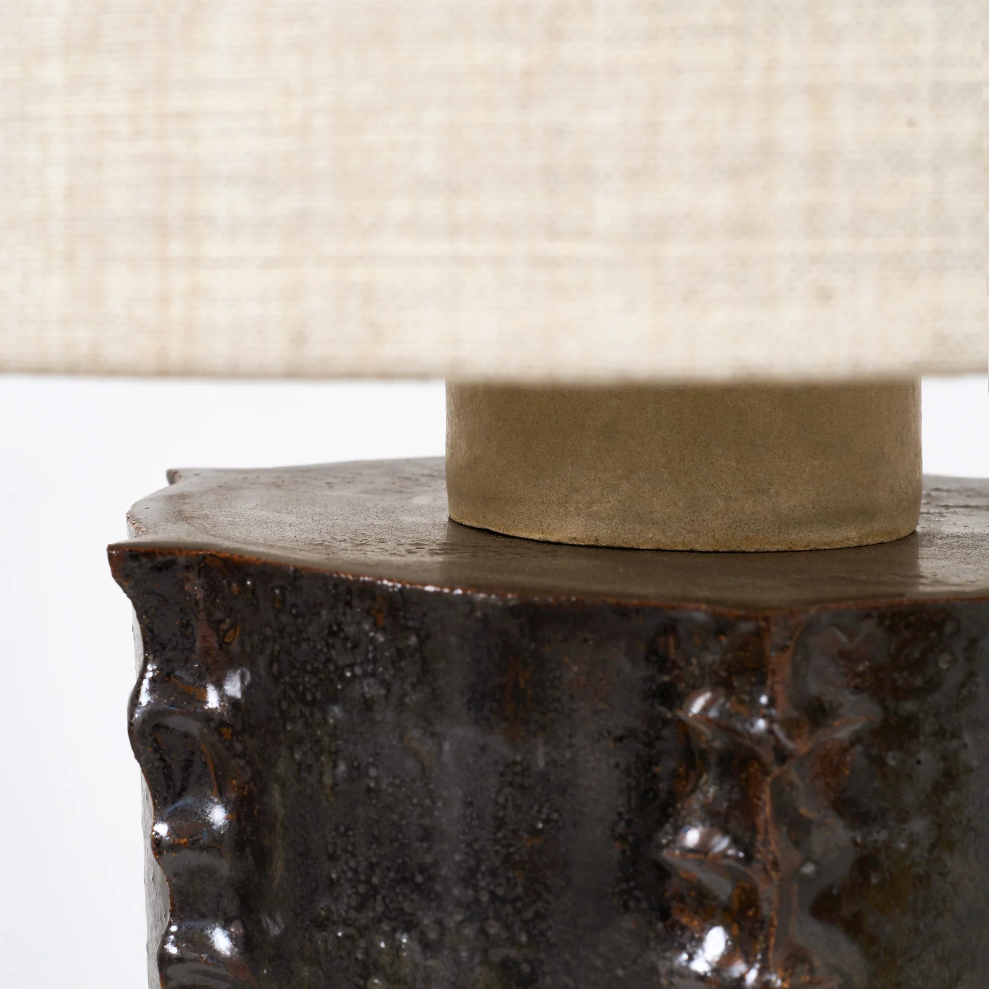 Artisanal ceramic light with a textured detailing, made in Project 213A's own ceramic workshop. Each piece is unique due to its handmade nature, shapes and shades of the ceramic base can vary slightly.