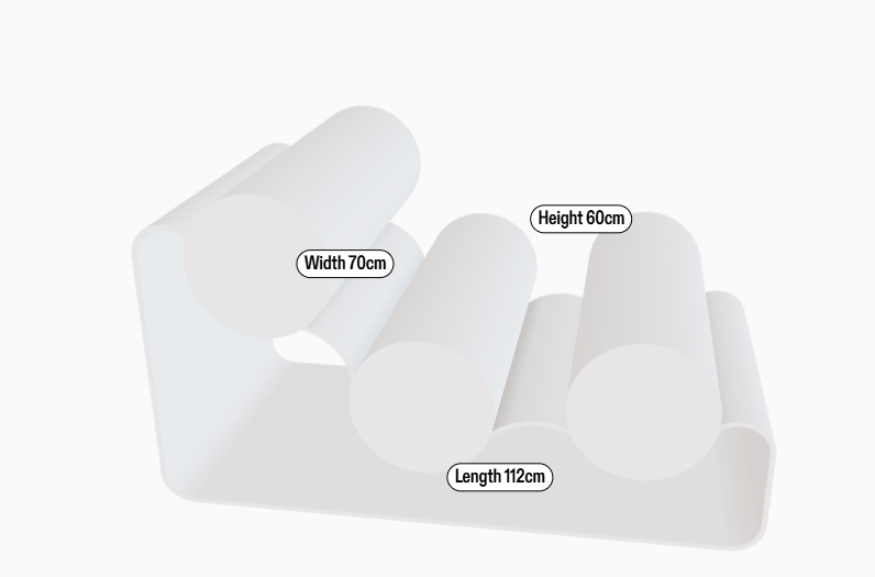 La Pepino is a collection of seating variations, built on the repeating pattern of cylindrical cushions, and supported by an organically shaped base. Every piece comes fully upholstered in customizable fabrics, and plays with the different points of contact between cushion and body.