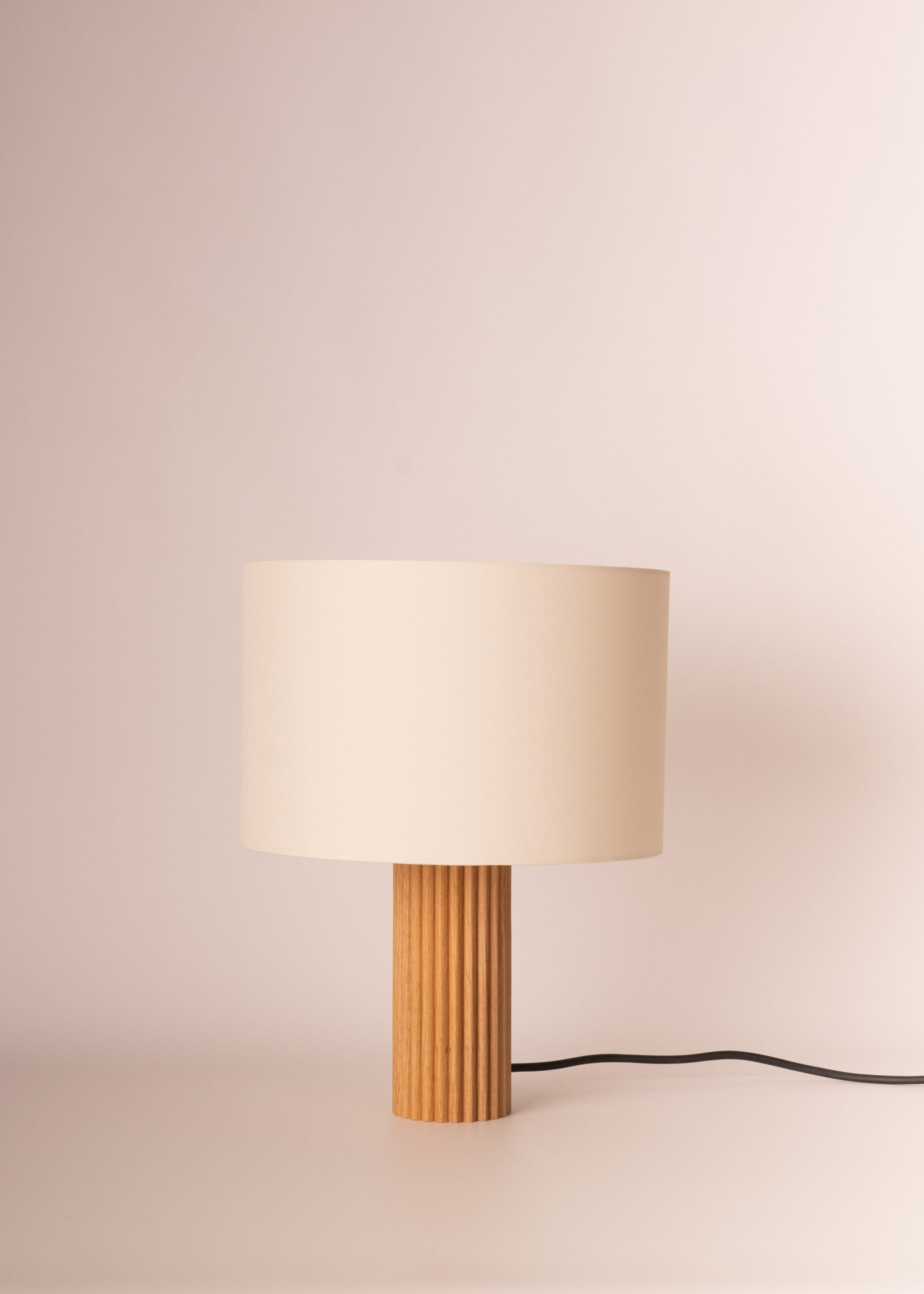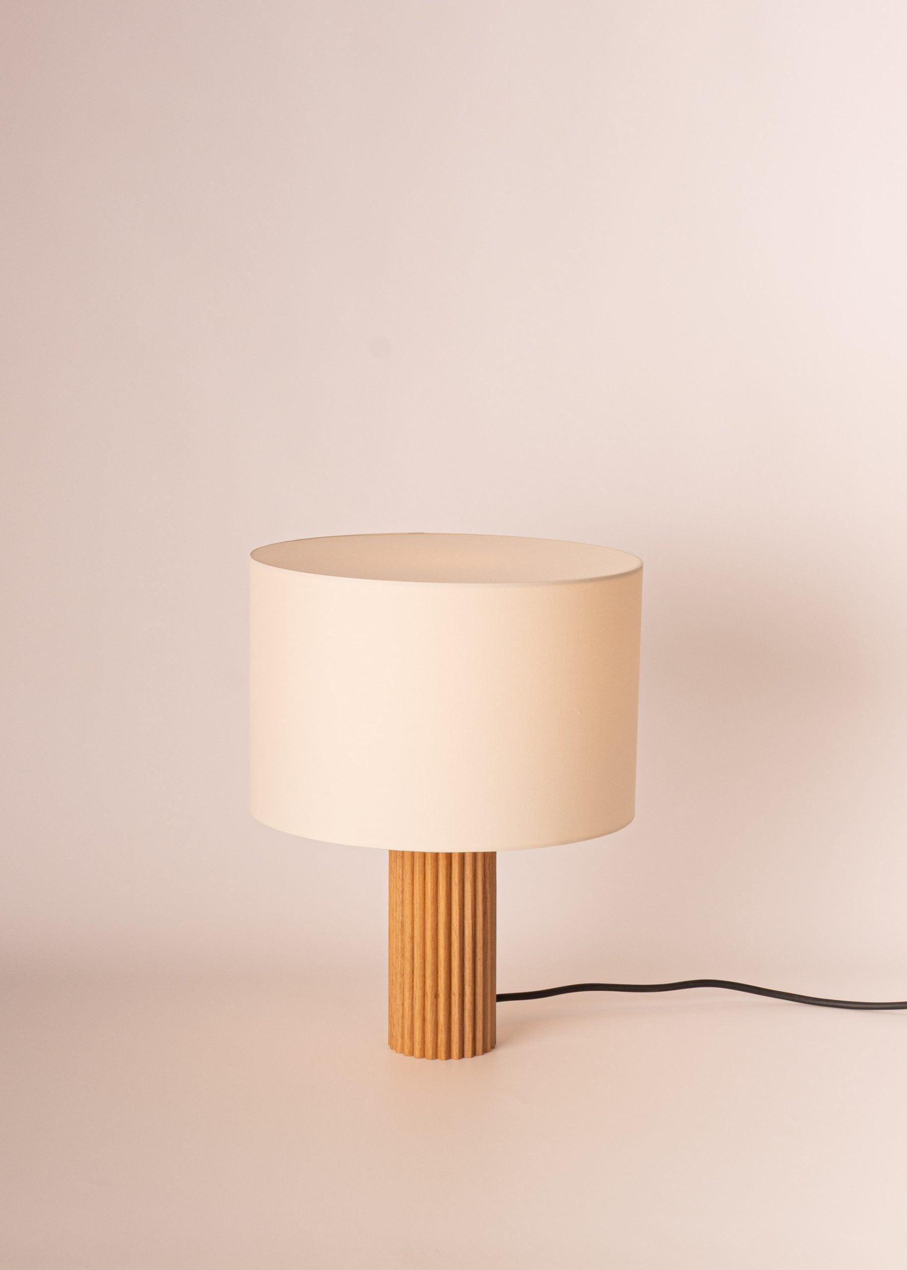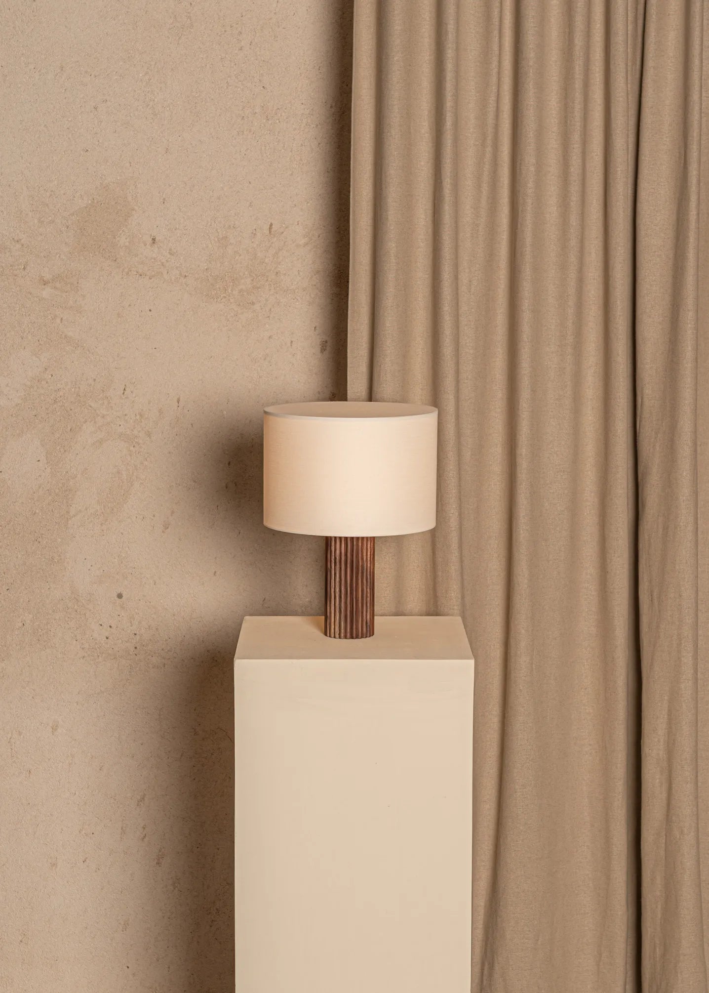 A fine ribbed column and our signature cotton drum lampshade makes the Flutita table lamp an exceptional and timeless piece. A selection of natural marble and solid wood to choose from for your interior.