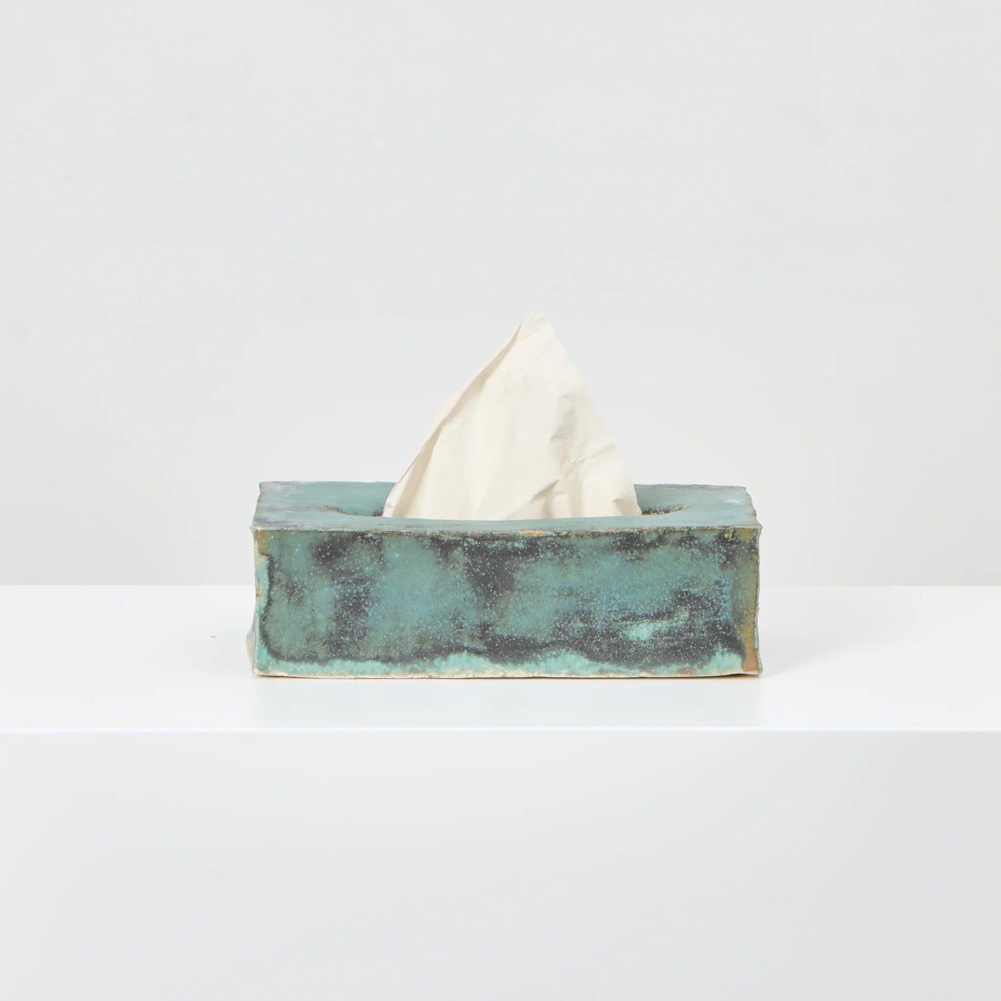 Artisanal ceramic tissue box created by skilled artisans in Project 213A's own ceramic workshop.