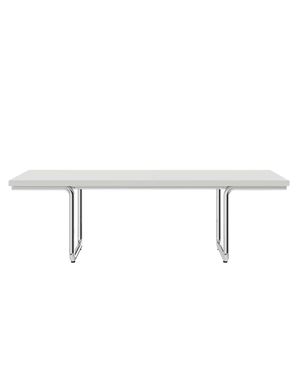 The LC table, designed by Castelli Design Studio in 1975, stands out among the company's corporate products in its executive-oriented wing. It can be seen as an indestructible monolith, in a pure relationship between aesthetics and function donated to man.