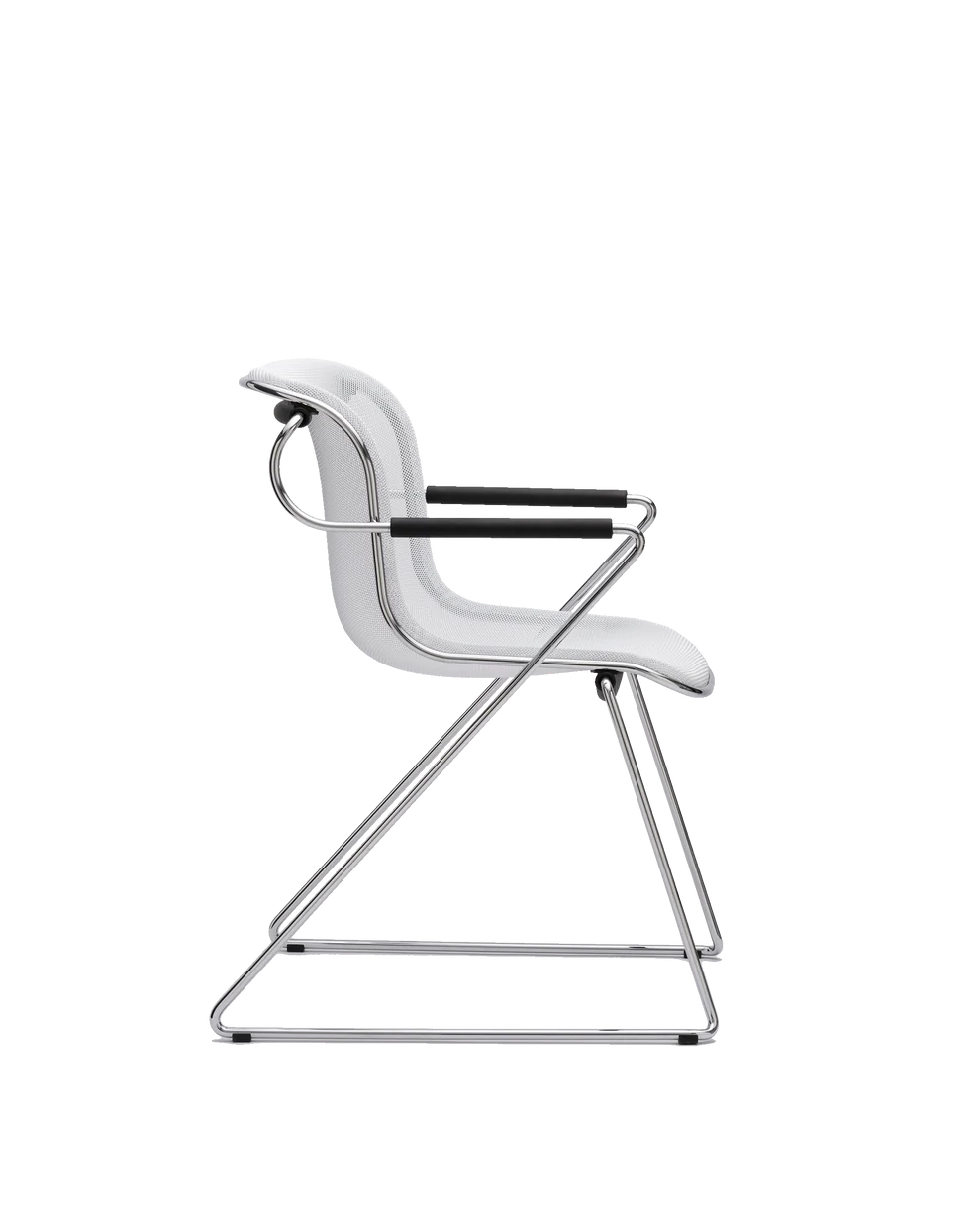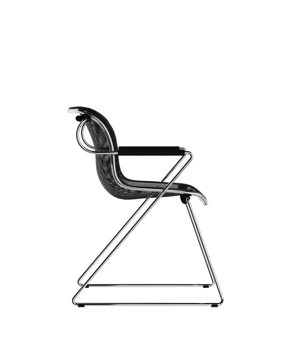 In 1982, Charles Randolph Pollock created Penelope, a true design classic. The American designed a light and flexible project for Anonima Castelli. Penelope consists of a sled base in steel wire supporting a mesh seat covered in Rilsan. The elastic effect of the base is underlined by a polyurethane tube that acts as a shock absorber. The armrest covers, made of the same material, offer additional comfort. With Penelope, Pollock has made a new form of seating a reality.