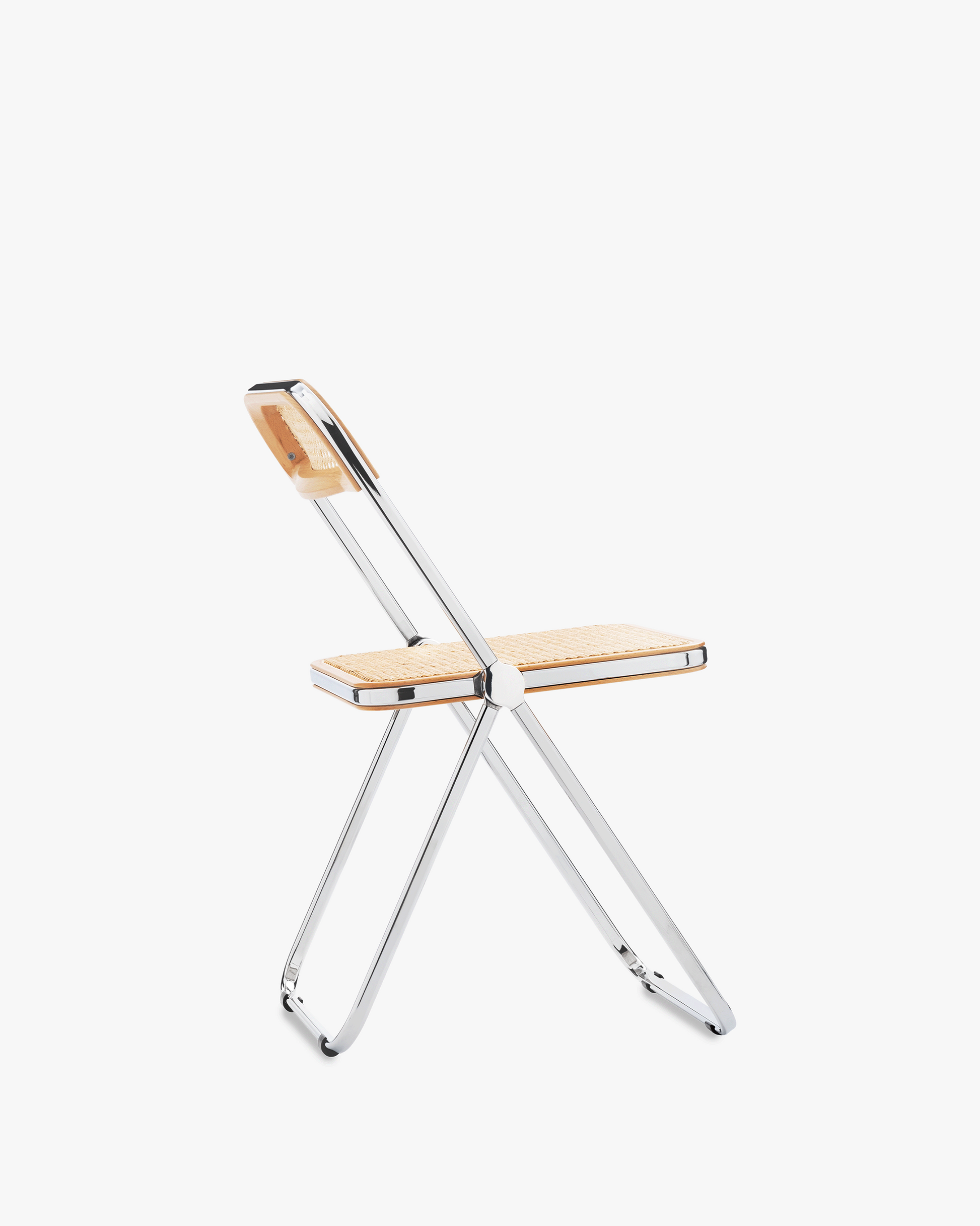 When it was presented in 1967 at the Milan Furniture Fair, the chair received such acclaim from the public that many visitors left the stand, taking the ones on display with them. As a consequence of this unorthodox compliment, the chairs were tied to the stand with a chain. Thanks to Plia and his study on the “three-disc pivot”, thus revolutionizing the concept of the folding chair, Giancarlo Piretti has gone down in history with the nickname of “Thonet of the 20th century”. Available in different colors, from the steel frame to its seat and backrest, it even boasts a version in Vienna straw stretched over a solid wood frame, capable of further enriching an icon of all-Italian style.