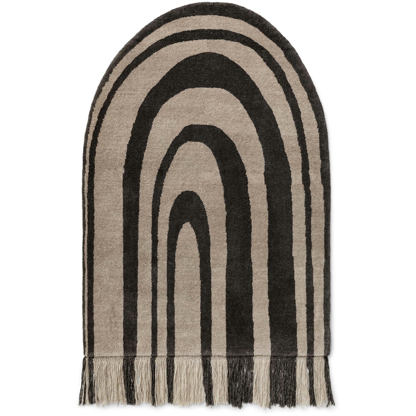 Rugs no.06 is a continuation of the iconic no.01 in a limited and luxe edition. The soft low pile has been hand knotted by the craftsmen with approximately 90 knots per inch which creates this true piece art. The curved triumph shape and the soft contrast between the dark grey and sandy beige create an eclectic and bold signature piece. A long fringe edge elevates the end line and adds an arty detail.