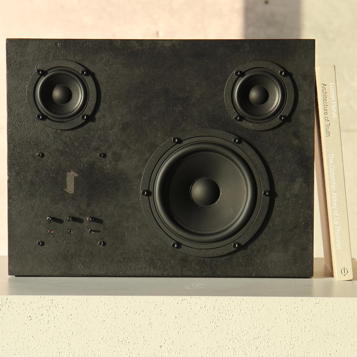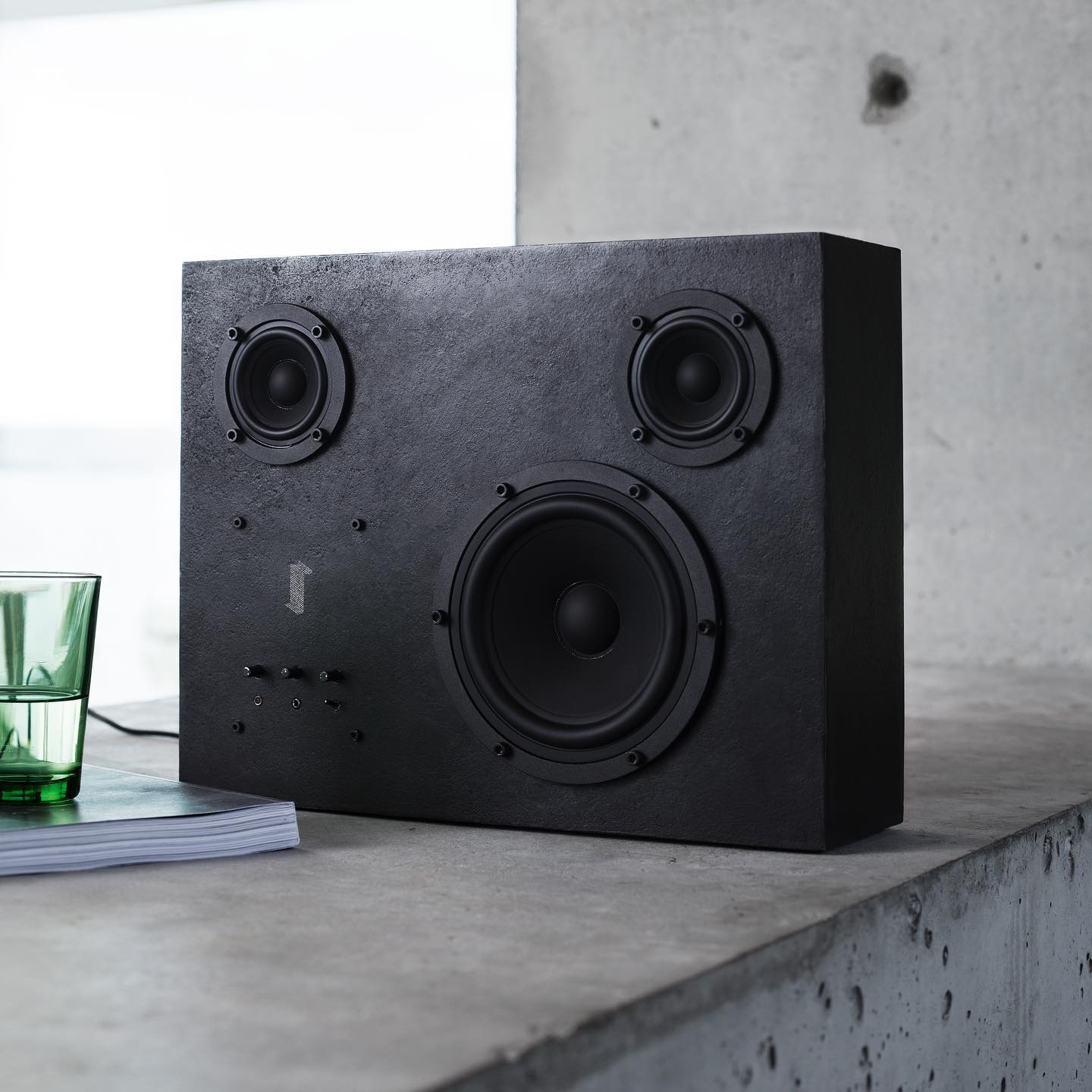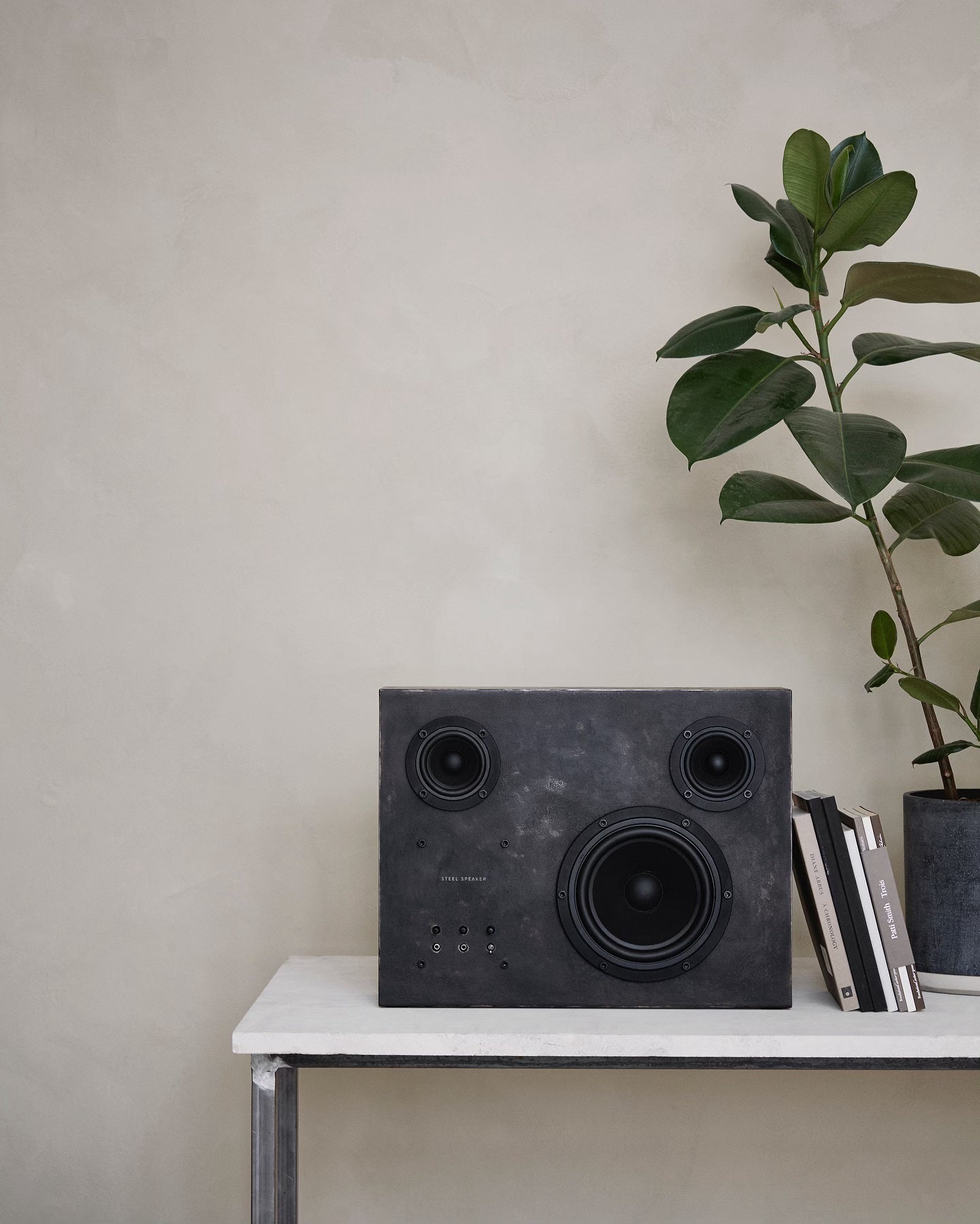 This speaker was handcrafted by blacksmith Jonas Majors in his workshop on the island of Mörkö south of Stockholm. The Steel Speaker is a heavy beast of 20 kilograms. It is supposed to manifest the power of our big speaker acoustic platform by its mere presence. The electronic appliance industry seems many times over crowded by black boxes. Therefore we saw it as our challenge to make the black box into a sculptural piece of craft that elevates a contemporary designed interior rather than violating it.